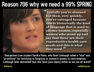 She talked about how the movement is at a stand still and we are not doing enough to move on. “We used to do more with less.” Women used to mobilize, march on the streets and scream loud for their rights. Today, we scream loud and we are called sluts. Yes, I live in a society where an idiot calls a woman slut for standing up and fighting for what she believes. If you are not aware, Rush Limbaugh called Georgetown Law Student Sandra Fluke a “slut” and a “prostitute” for testifying to congress on Women’s access to contraception. Fluke’s response, “ this is the kind of language that is used to silence women, especially women who stand up and say that these reproductive health care needs and this is what they need. “
