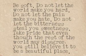 I loved it and understood what she meant. Sometimes in life we are too busy putting our selves back together with tape and glue we refuse to stop to see what is around us.