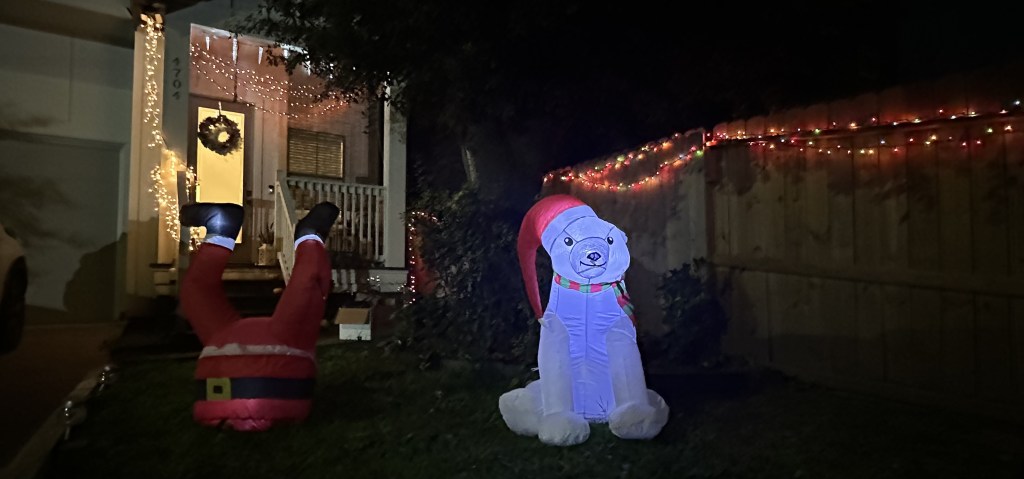I made time to put up colorful Christmas lights this year. Last year I didn’t and Gael was disappointed. I didn’t disappoint him this year.